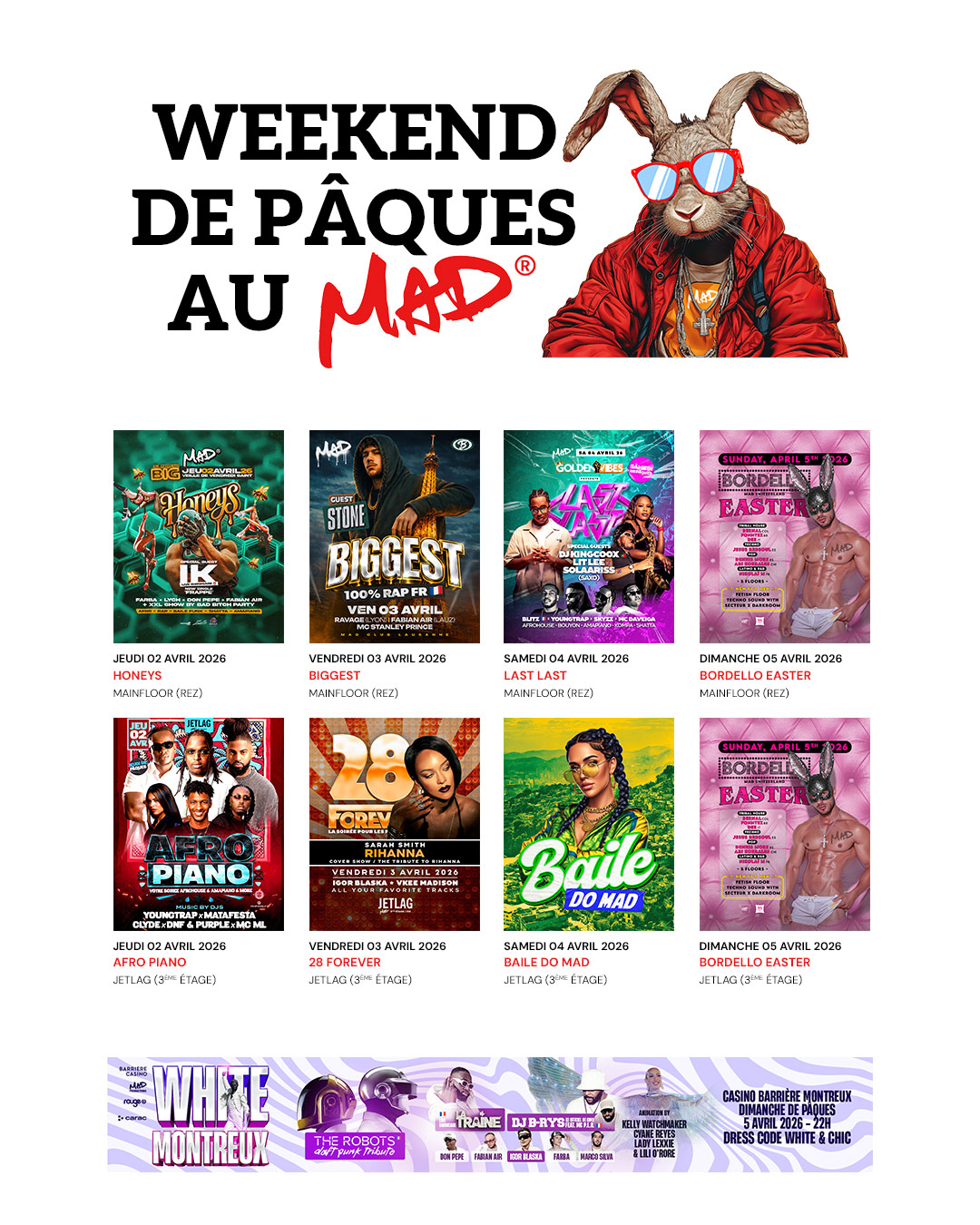 Pour ce long week-end de Pâques, c’est chasse aux pépites — de chocolat — et lâcher de lapinous dansants au MAD Club.
